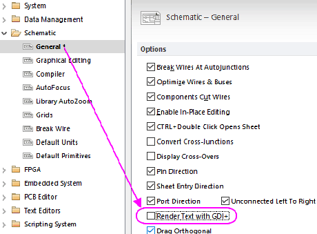 在進行電路圖列印檔案時,是否有發生過文字顯示不全的情況,像是零件接腳上的名稱、電源與地的名稱…等, 本篇將說明如何解決此情況問題。