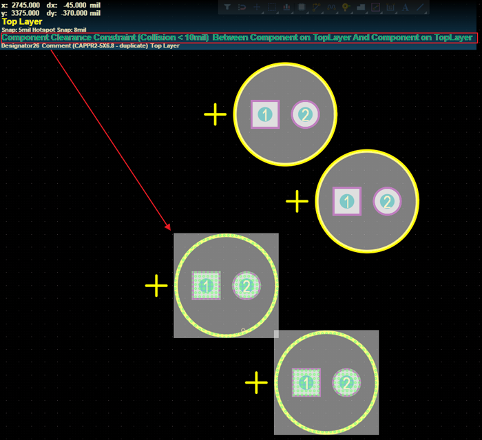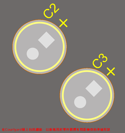 如果在Courtyard圖層(將Layer Type設置為Courtyard的機構層)上定義了某種形狀,則將該精確形狀用於選擇和零件間距檢測