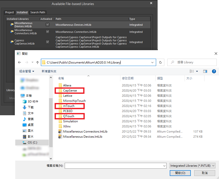 安裝的零件庫會在安裝指定路徑下的Library 資料夾底下,掛載之後即可使用。