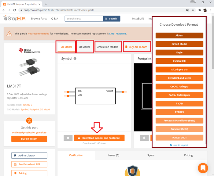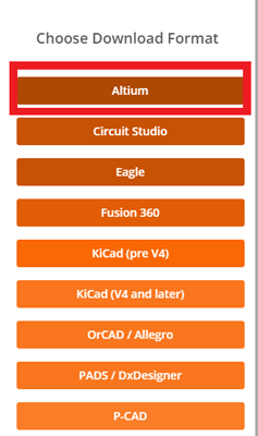 5. 最重要的一點是,所選到下載零件,可以選擇下載的軟體類型,可以直接選擇Altium 軟體類型,下載下來就可以直接使用了。