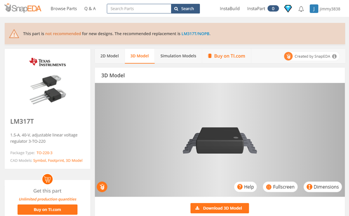 1. 發現有個網站可以取得零件,而且連3D也可以下載。https://www.snapeda.com/