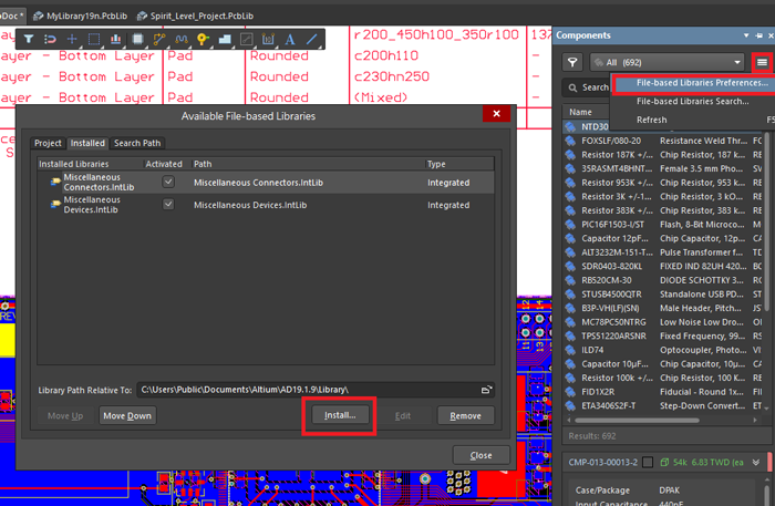 8. 下載後的零件庫是副檔名.IntLib,為整合零件庫,可直接掛載即可使用,或是在零件庫編輯畫面,把零件複製貼上存到自己的零件庫內便於整合使用。