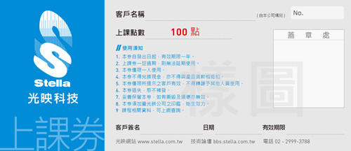 教育訓練費用請洽詢 光映科技 02 8772 8829 / sales@stella.com.tw